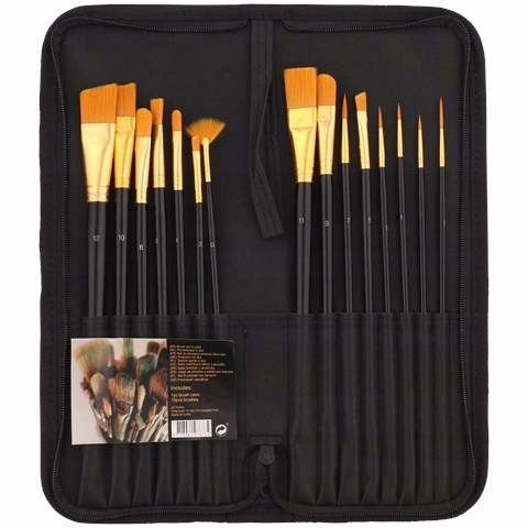 Набір із 15 пензлів у зручному футлярі — чудове рішення для художників. Зручний футляр із відділеннями дозволить зручніше брати необхідні речі з собою під час фарбування. Невеликий розмір чохла означає, що його можна легко покласти в сумку, рюкзак або носити в руках.