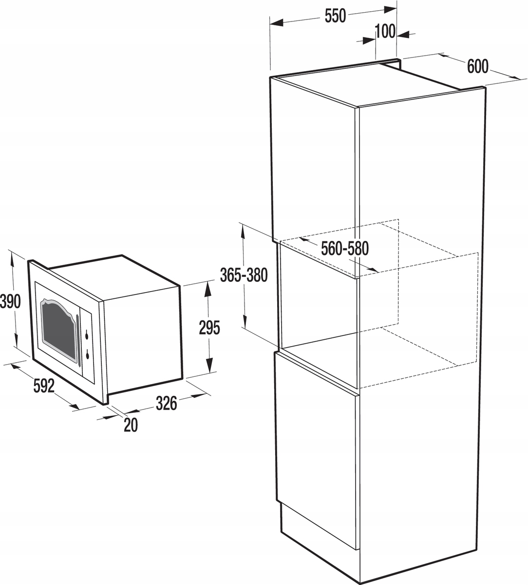 - Вбудовані розміри: 56,6 × 36,5 × 55 см