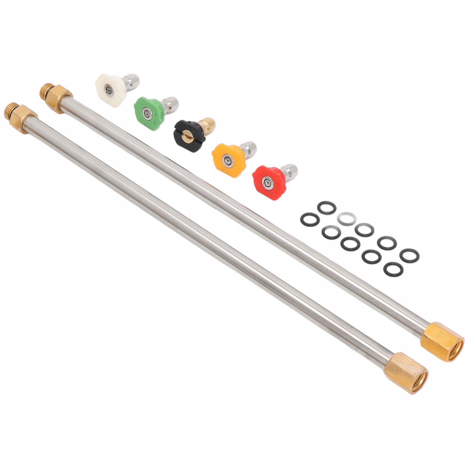 2. Упаковка: набір складається з 6 прямих стрижнів, вигнутого стрижня та 5 наконечників з насадками з кутом 65, 40, 25, 15 і 0 градусів, для різних застосувань.