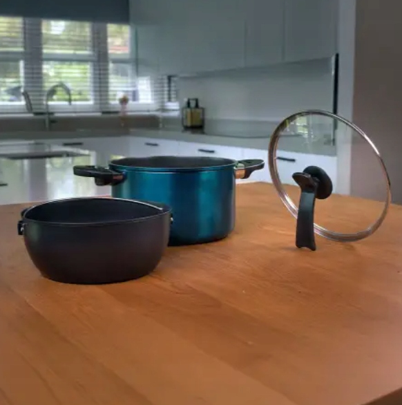 Келтон Повний страви з кухонними стравами, що кухонні страви роблять готуючи швидше та простіше. Це більше, ніж кухонні страви. Це повна система, яка дозволяє витрачати менше часу на приготування їжі та прибирання, і більше з родиною. Це дозволяє всебічно кулінарій, а найбільша таємниця -унікальна нештридальна технологія та знімна ручка. Цей набір пропонує необхідну універсальність та продуктивність. Він не тільки забезпечує функціональність, але й стиль. Прекрасний синій колір надасть кожній кухні витончений і сучасний вигляд. І дизайнерська ручка скляних кришок дозволяє поставити на нього столові прилади, але також покласти кришку, щоб вона не капала і не витікала.
