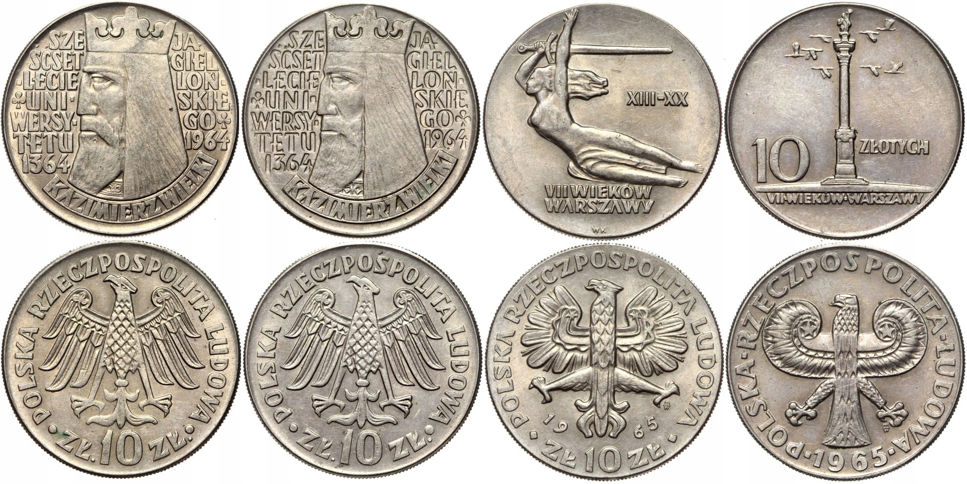 Польща - PRL НАБІР 4 монети: КОЛОНА СИГМУНТА + НІКА + 2 х КАЗИМИР ВЕЛИКИЙ. Набір із 4 пам’ятних монет, викарбуваних у 1964-1965 роках.
