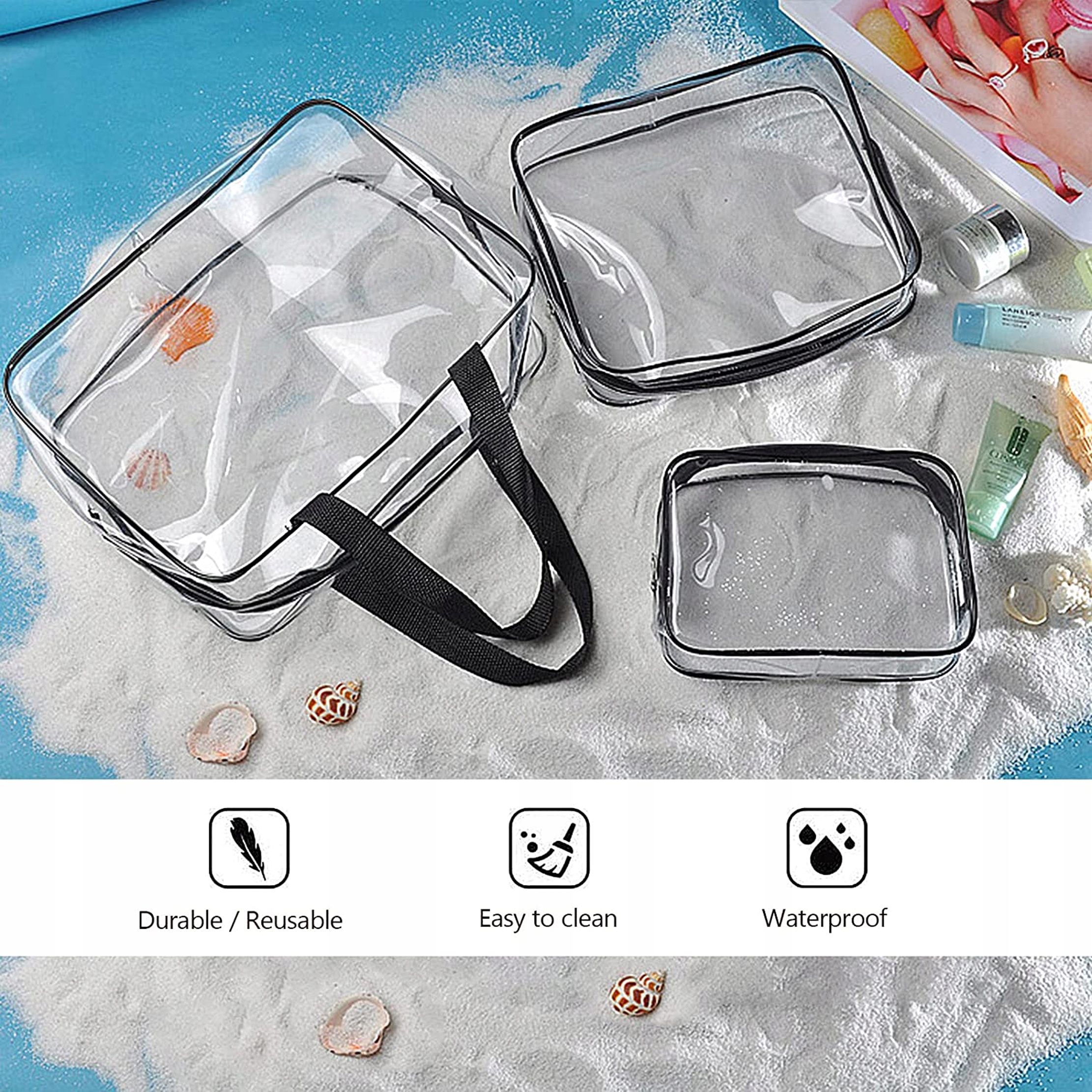 З набором наших косметичних сумок на блискавці ви зможете легко сортувати всі свої туалетні приналежності та аксесуари для макіяжу та впорядковувати свій багаж. Кожна косметичка має різні розміри, тож ви можете адаптувати її призначення до своїх потреб і краще використовувати простір у своїй валізі. У нього помістяться всі туалетні приналежності, необхідні під час подорожей. Повністю прозорий матеріал дозволяє бачити вміст косметички, не відкриваючи її, що особливо корисно в аеропортах. Крім того, косметички водонепроникні, тож ви можете бути впевнені, що їхній вміст не витече на решту вашого багажу. Найбільша косметичка має зручні ремені для носіння як сумочку. Вони ідеально підходять для поїздок на відпочинок, коротких поїздок, походів у спортзал, басейн або на тренування, а також для зберігання вдома.