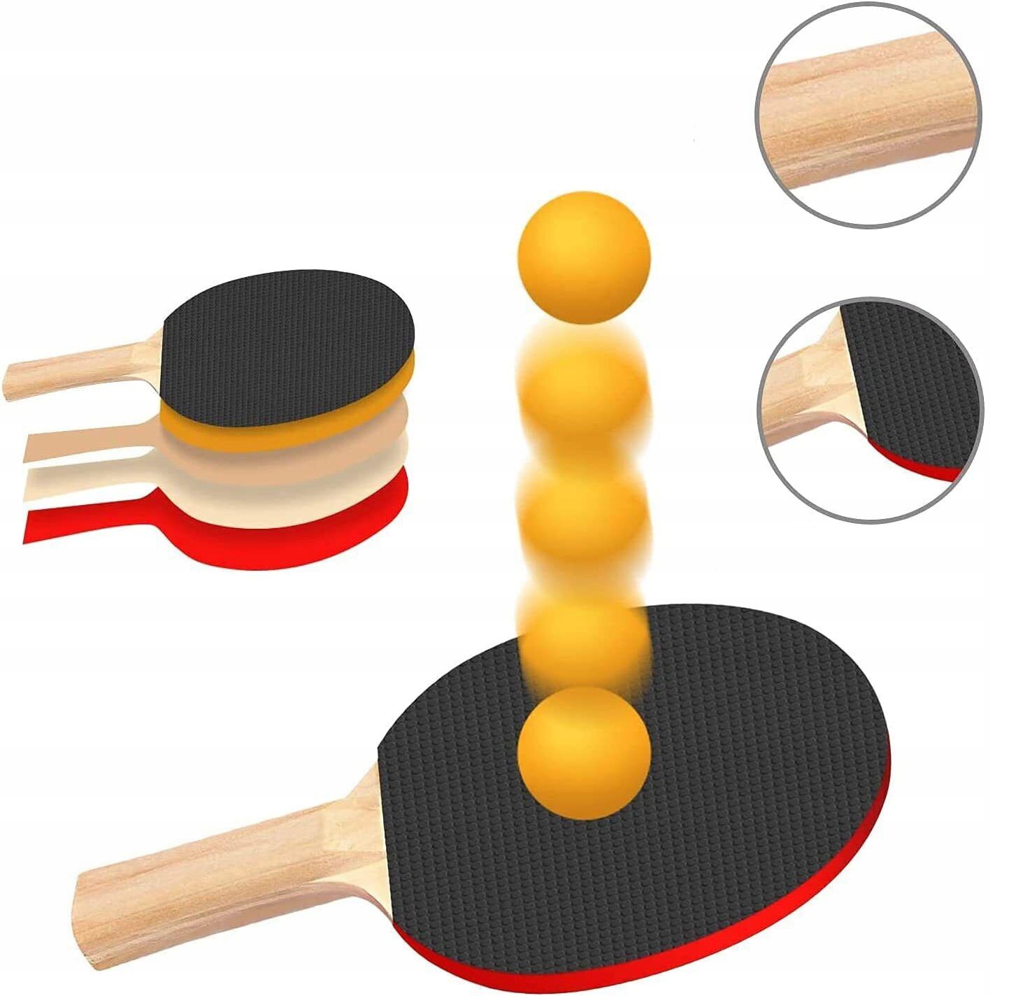 🏓 Професійні ракетки та м’ячі для настільного тенісу:Ракетки для настільного тенісу з ергономічною подовженою ручкою, що забезпечує зручне захоплення під час тривалих занять, з хорошою ефективністю поглинання поту, забезпечуючи відмінний контроль і обертання.