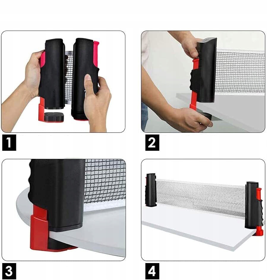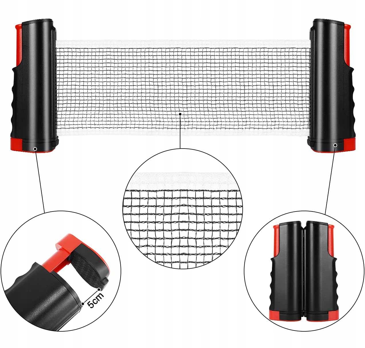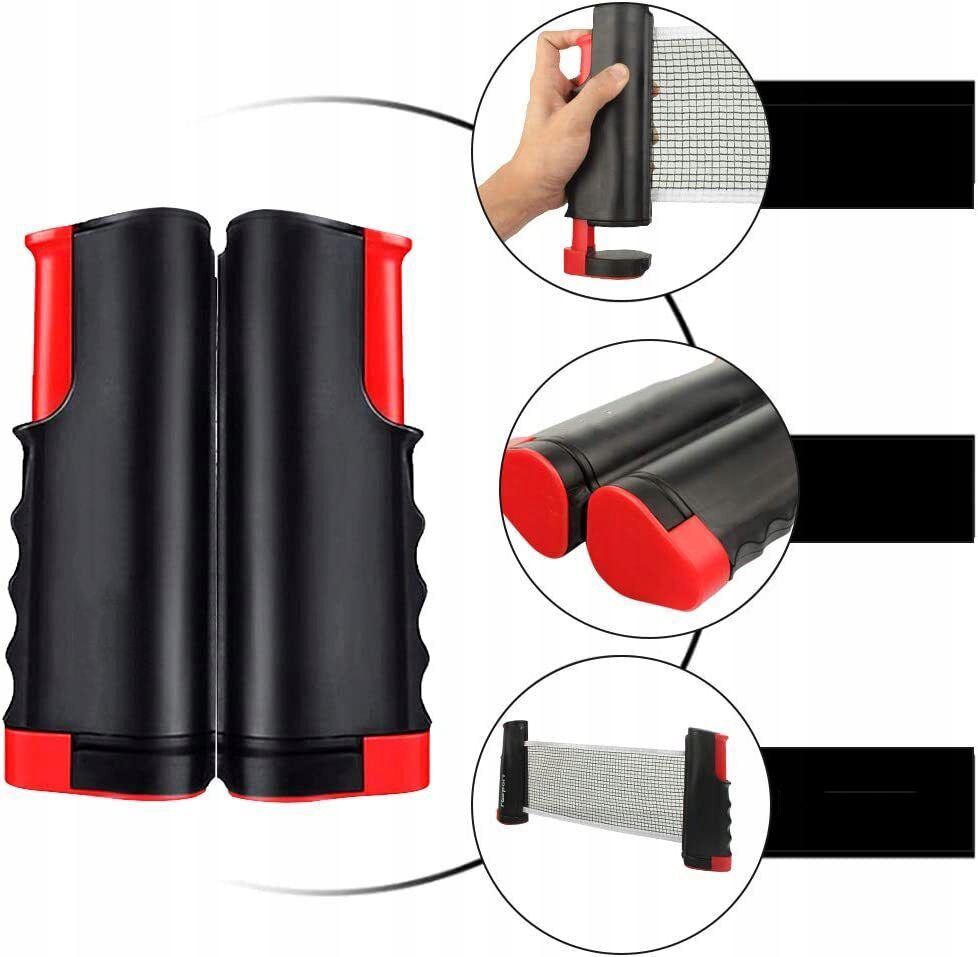 🏓 Сітка, яка легко встановлюється та рухається: Висувна конструкція сітки дозволяє встановити її на столи будь-якої форми та довжини, можна подовжити максимум до 170 см і підходить для столів товщиною до5 см. Просто розкладіть сітку на столі, і все готово!
