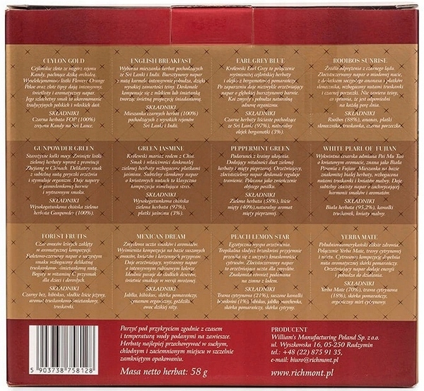 Набір Richmont, глечик з чашкою + 12 видів чаю