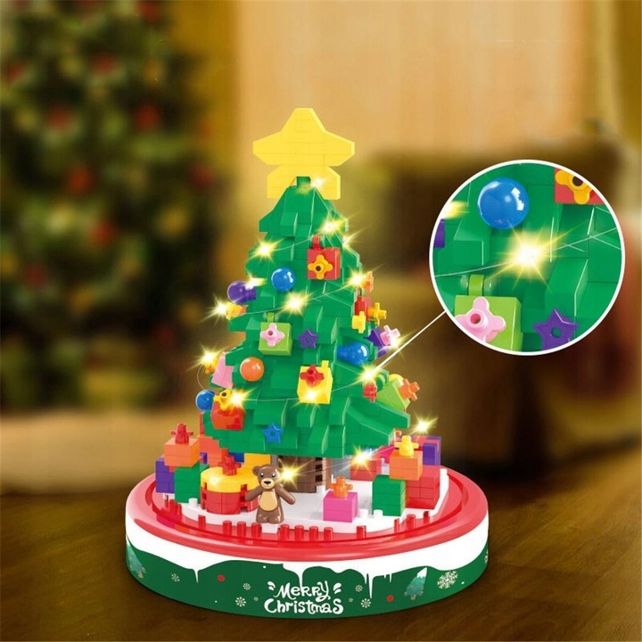 🎄🎄 У набір входить загалом 542 цеглинки, з яких можна побудувати ялинку, прикрашену плюшевим ведмедиком, подарунками, різнокольоровими кульками та світлодіодною гірляндою, створюючи радісну різдвяну атмосферу.