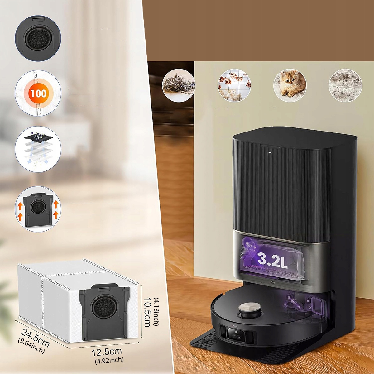 ⏩【Краща продуктивність】Пилозбірник складається з 4 шарів нетканого матеріалу та активованого вугілля, який утримує 99,9% бруду та усуває неприємні запахи. Мішка 3,2 л вистачає на 100 днів.