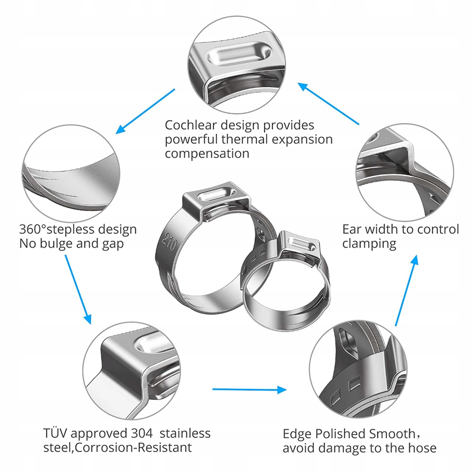 Набір вушних хомутів Плоскогубці вушних хомутів Плоскогубці вушних хомутів із 130 шт. 7 різних розмірів (5,8-21 мм) затискачів для шлангів Черв’ячний привід для вушних хомутів