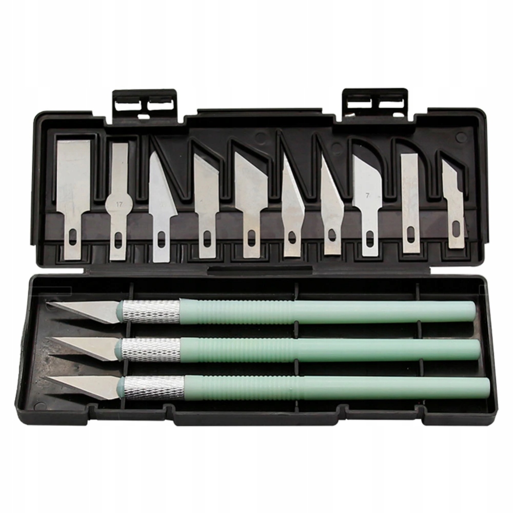 Набір включає три зручні для тримання ребристі ручки до якого будь-який з 13 лезами. Широкий вибір форм і розмірів лез дозволить вам пристосувати інструмент до поставленого завдання.