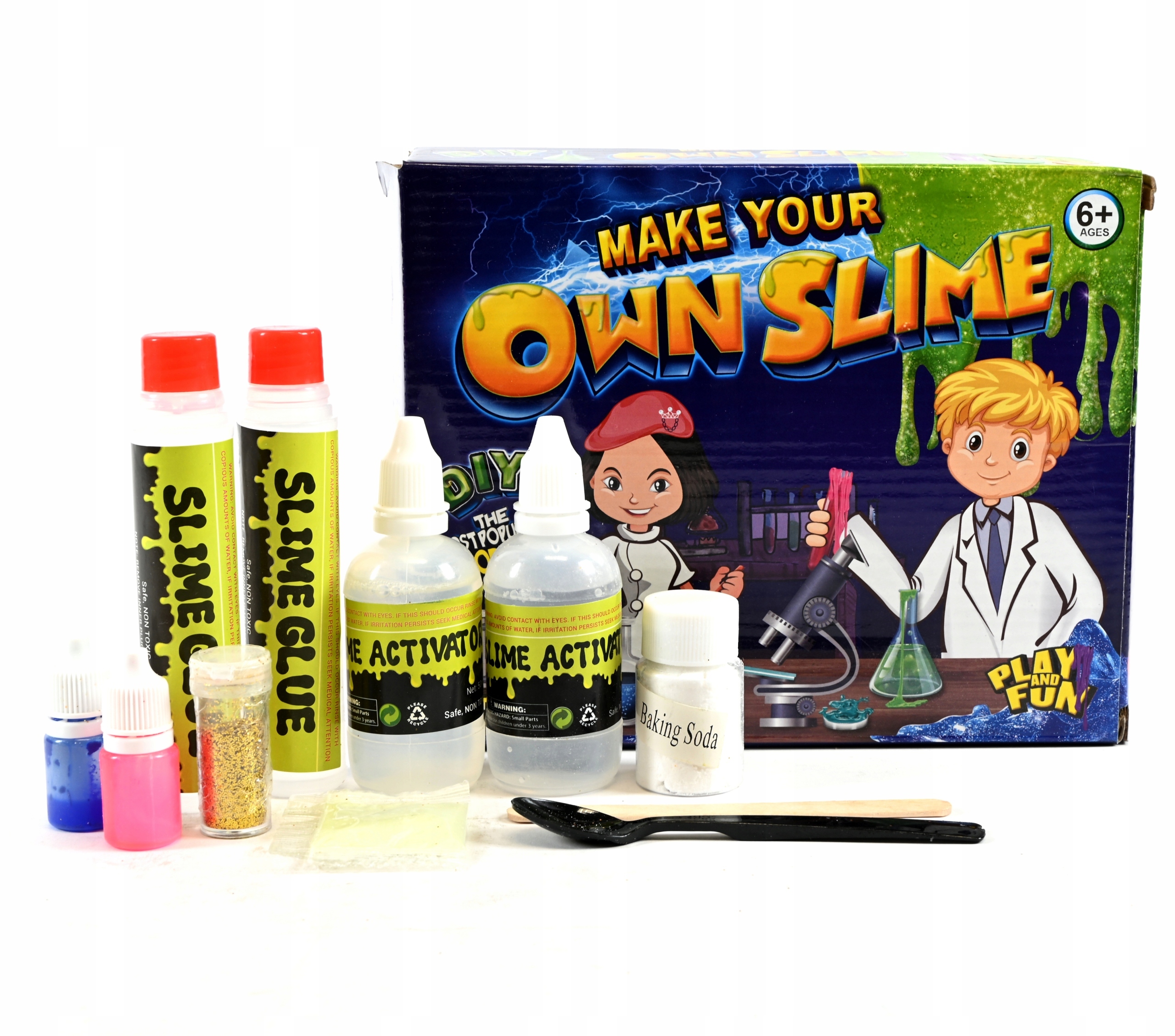 У цьому наборі є все, що вам потрібно, щоб створити власну лабораторію слизу. Просто додайте воду та інгредієнти з набору, і ви можете почати створювати дивовижні маси!