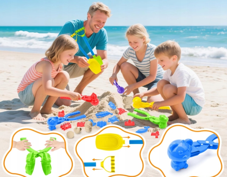 Іграшки чудово працюють як на піску, так і на снігу. Діти можуть будувати замки, тунелі, фортеці або створювати сніжки - розвага можлива в будь-яку пору року. Це набір, який росте разом з дитиною і дає багато можливостей.