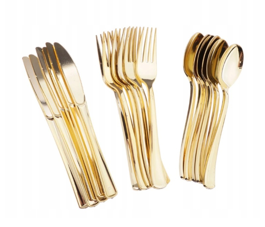 Набір Столових приборів Одноразові Пластикові ЗОЛОТІ 30 елементів Прийоми Вечірки