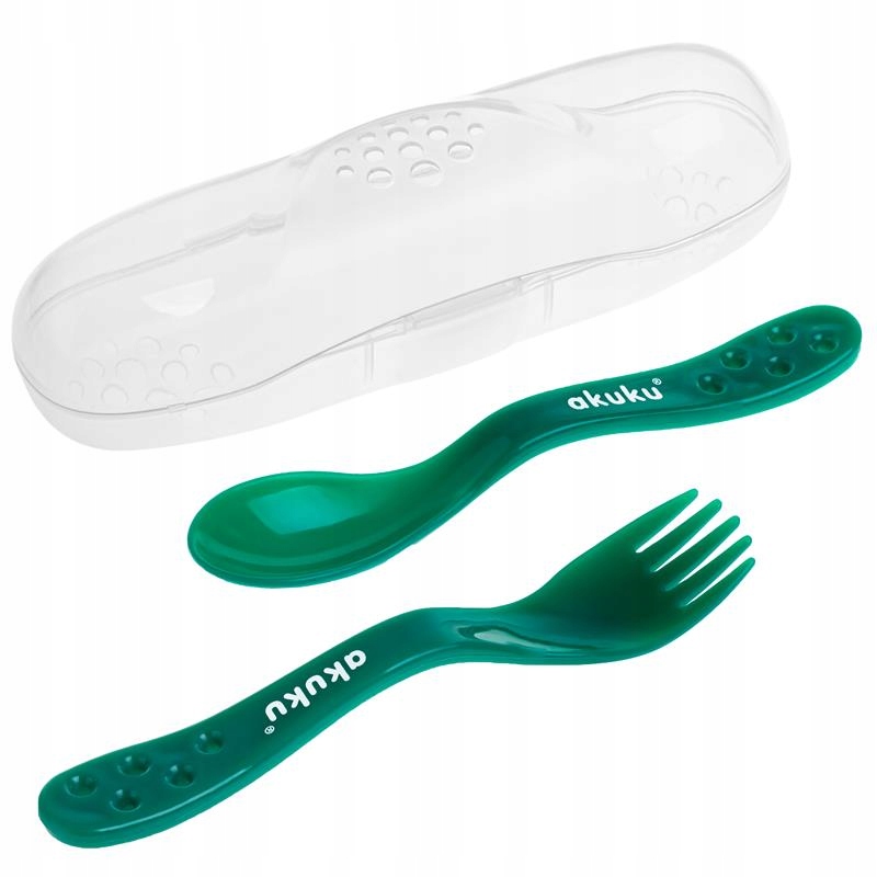 Оснащені практичним чохлом, завдяки якому вони добре зарекомендують себе поза домом - на прогулянках і в подорожах. Виготовлений з безпечних високоякісних матеріалів, призначених для контакту з харчовими продуктами. Округлі форми столових приборів ідеально адаптовані до ніжних ясен маленької дитини.