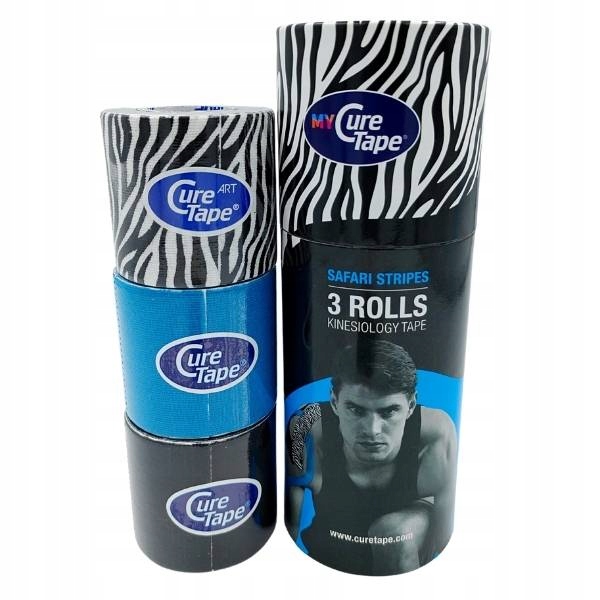 Набір із 3 стрічок для кінезіотейпування My Cure Tape 5 см x 2,5 м Safari Stripes у практичній і Спеціально підібрана комбінація кольорів упаковки - це найякісніші пластирі для кінезіотейпування з дуже широким спектром застосування у фізіотерапії та спорті.