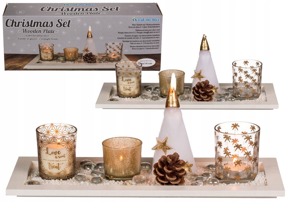 Дуже привабливий елемент декору для будь-якої кімнати, який створить різдвяну атмосферу - дерев'яна біла підставка, на якій розміщені спеціальні скляні контейнери для свічок та ялинкових прикрас розміщено.
