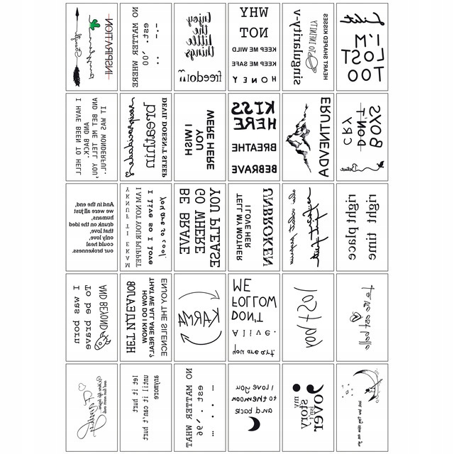 Тимчасове татуювання з текстом, яке змивається, — ідеальний спосіб виразити свої думки, почуття та надихаючі слова на своїй шкірі. Набір із 30 предметів дозволить вам носити різноманітні цитати та написи, які будуть для вас значущими.