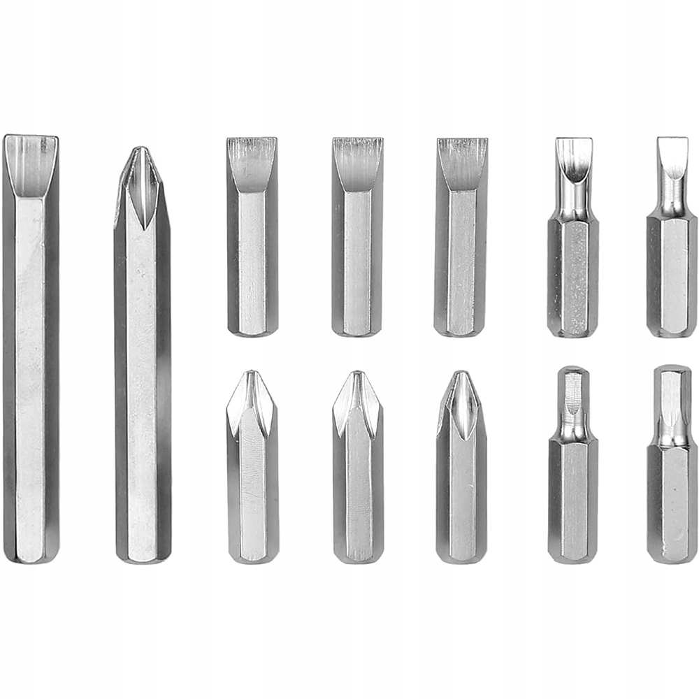🔩🔩🔩【Супер-набір】Цей продукт містить 12 насадок для викрутки трьох різних розмірів: шлицеві, хрестоподібні та шестигранні, а також знімну торцеву ручку розміром 1/2 дюйма для повного задоволення ваших потреб.