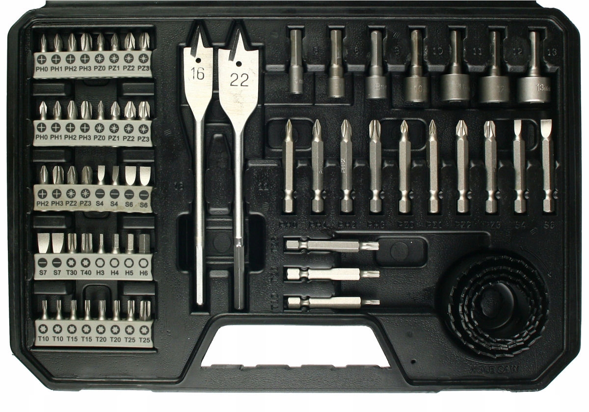 Компактне розташування свердел і насадок викрутки та інструменти підтримують порядок і допомагають заощадити місце під час зберігання аксесуарів.