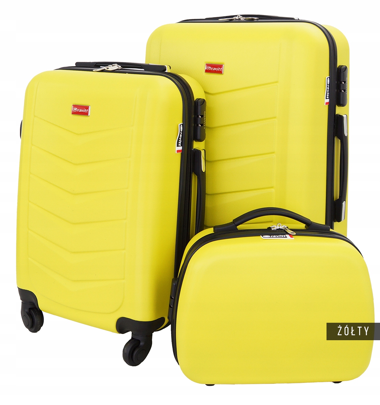 Валізи, представлені нижче, виготовлені з матеріалу ABS. Вони мають внутрішнє відділення та ремені для кріплення, які допомагають упорядкувати ваш багаж. Чотири поворотні колеса полегшують їх переміщення, а зручні бічні ручки полегшують перенесення.