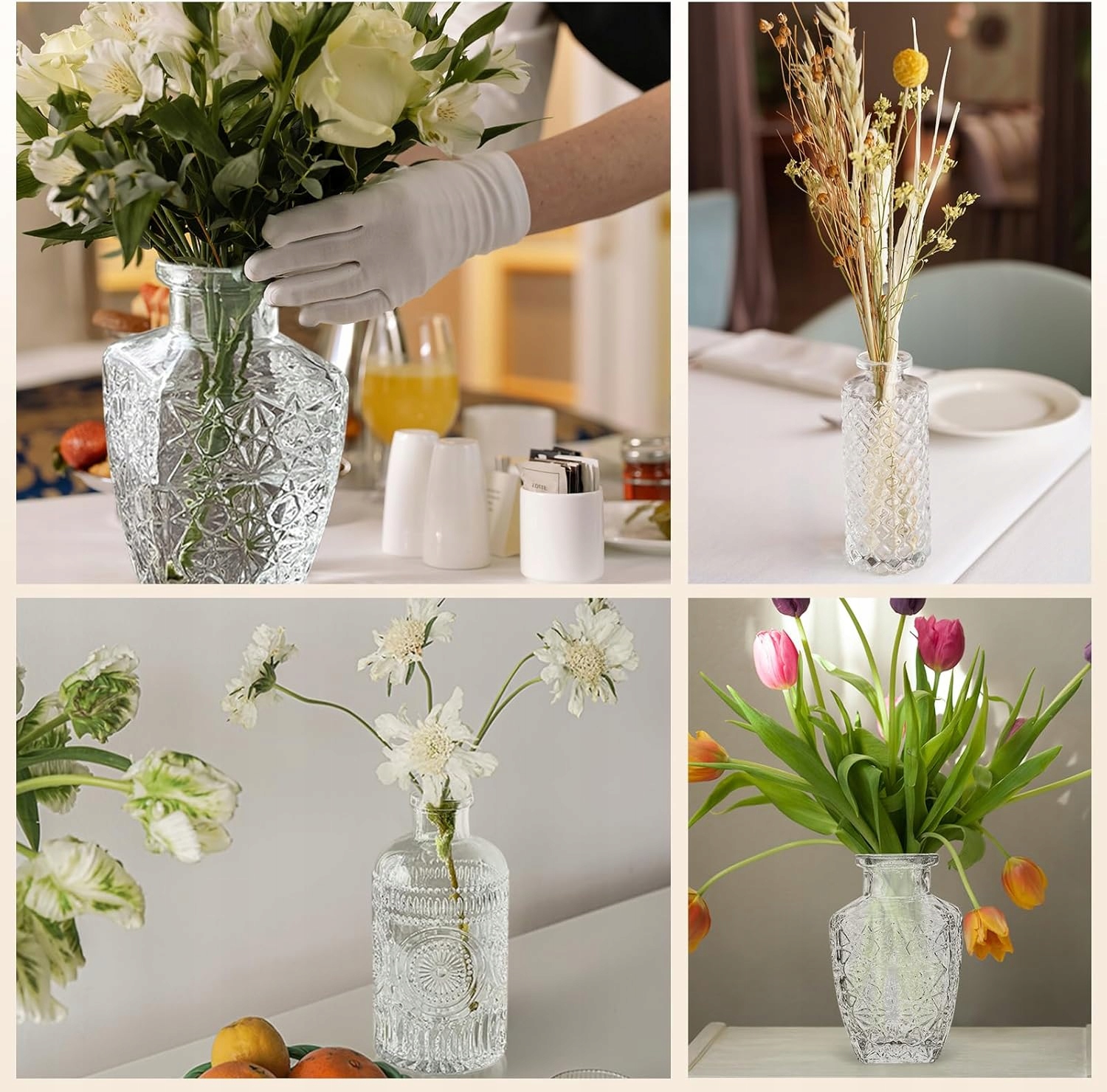 Підсумовуючи, набір із 12 міні-скляних ваз у вінтажному стилі — чудовий вибір для людей, які шукають елегантну та стильну прикрасу.