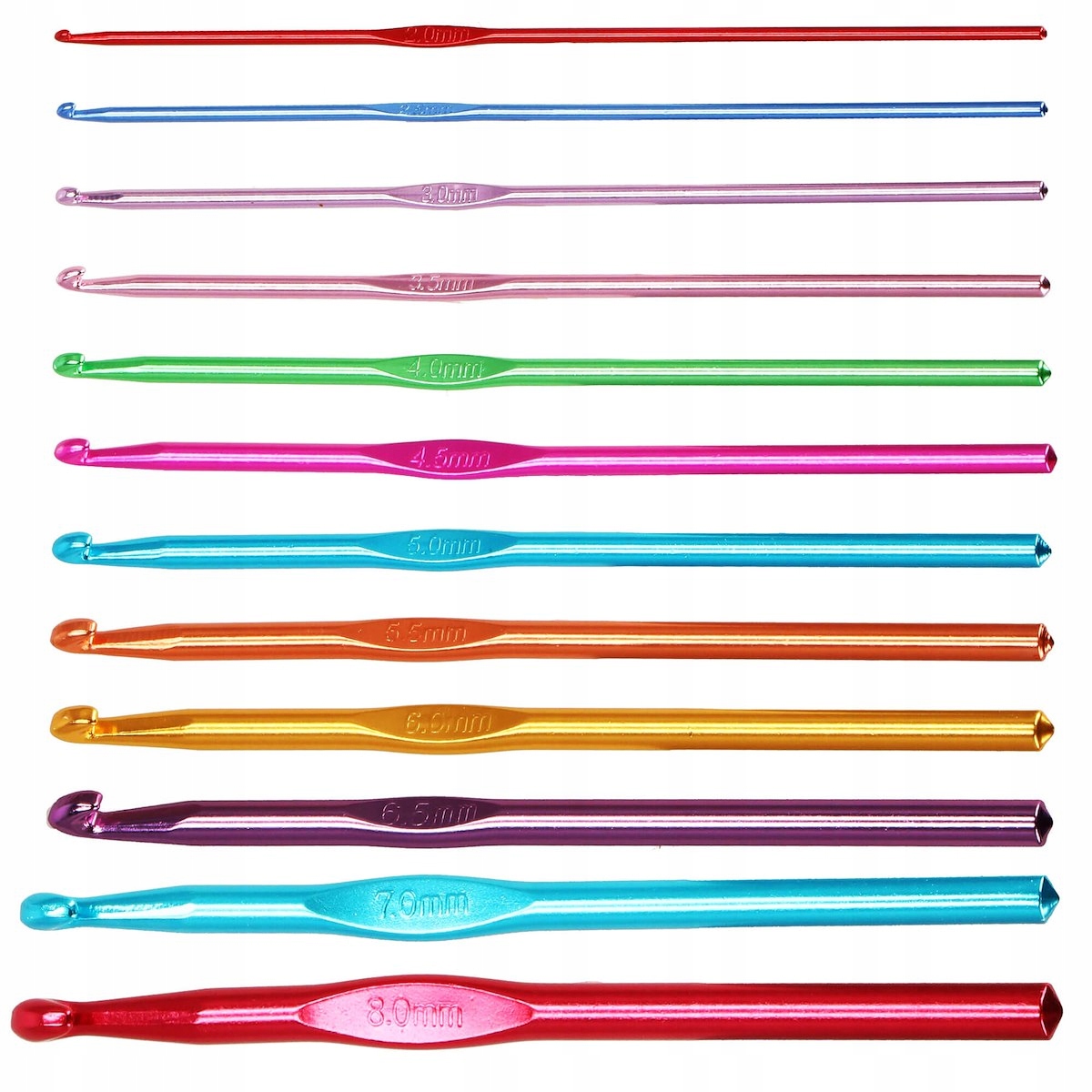 Гачки для в'язання гачком відрізняються розмірами, щоб вам було простіше визначити необхідне обладнання, кожен розмір має окремий колір. Це просте рішення робить в’язання гачком набагато легшим і приємнішим.