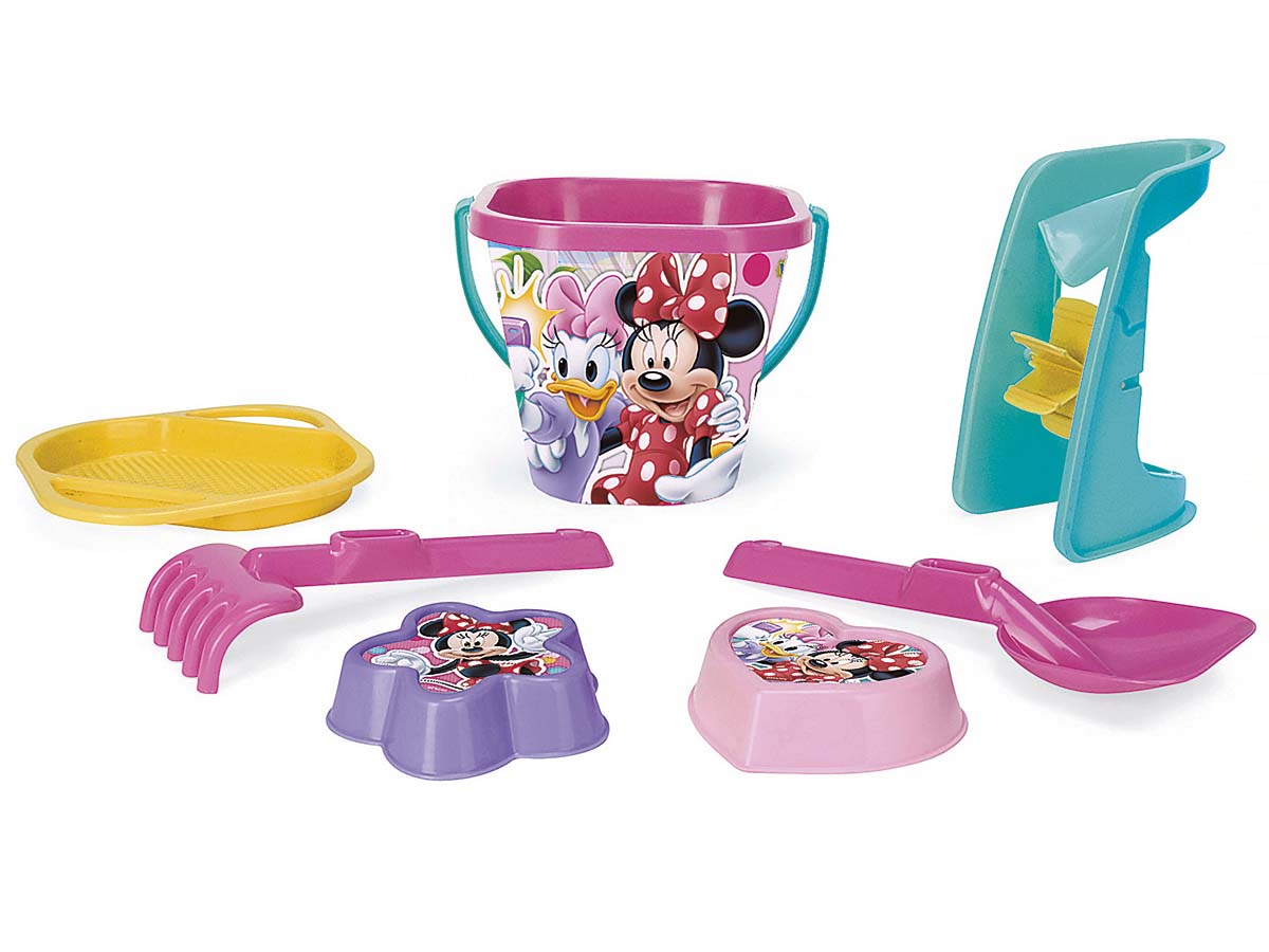 Пісочний набір з Мінні Маус, що складається з 7 елементів рожевого та фіолетового кольорів, сподобається всім любителям творчих ігор з піском. У набір входить: квадратне відро, лопата, граблі, ситечко, м'ясорубка і форма. Окремі елементи мають цікаву графіку, виконану методом IML. Завдяки цьому він витримає контакт з водою і сонячними променями. Пісочний набір дає вашій дитині можливість творчо розважатися як з компанією, так і без неї. Набір стимулює уяву найменших. Це дає вам шанс познайомитися з новими друзями та запросити їх пограти разом, що допоможе вашій дитині розвинути її соціальні навички та навчити її поводитися в групі. Творча гра з піском стимулює дитячу уяву, підтримує їхню фізичну активність, рухові навички та координацію. Все виготовлено з нетоксичних, безпечних і міцних матеріалів.