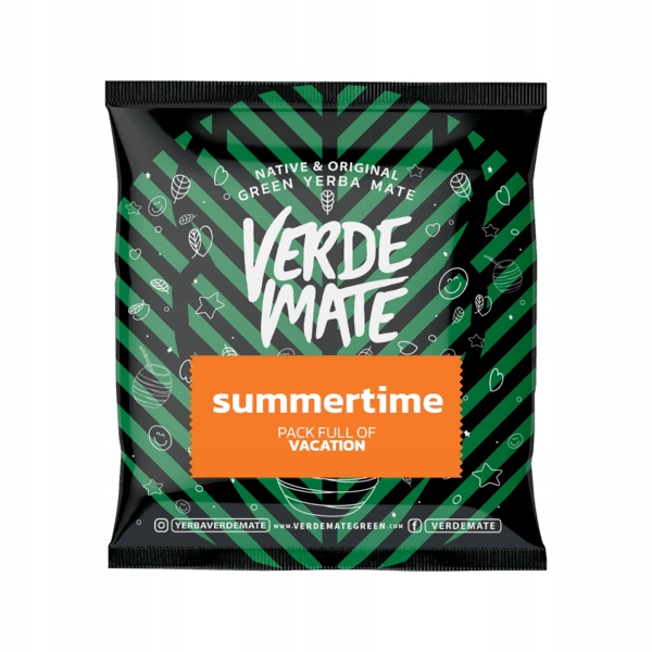 Verde Mate Green Summertime ☀ Це обмежена смакова варіація знаменитої бразилії з штату Парана. Він буде доступний лише влітку, тому не варто затягувати покупку! Особливо, що ми маємо справу з дійсно цікавою композицією під час свят. Як і у багатьох інших зелених сумішей Verde Mate, і цього разу ми маємо справу з дуже багатим злиттям природних інгредієнтів. Цитрузи виходять на перший план у вигляді помаранчевої шкірки та мандаринової олії . Вони доповнюються щетиною м’яти і акуратно прямими пластівців календули . Весь гармонійно поєднується з зеленим бразильським партнером Єрба, створюючи композицію з відмінним смаком та високим вмістом кофеїну.