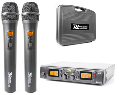 Power Dynamics PD782 - 2x 8-канальна, професійна, УВЧ бездротова система з двома ручними мікрофонами, приймачем і міцним футляром для безпечного транспортування. Завдяки рідкокристалічному дисплею на ручці мікрофона зміна каналів передачі проста і зрозуміла. Мікрофони працюють на частотах 863-865 МГц і ідеально підходять для використання на сцені, під час презентацій, лекцій, КАРАОКЕ та для запису вокалу.
