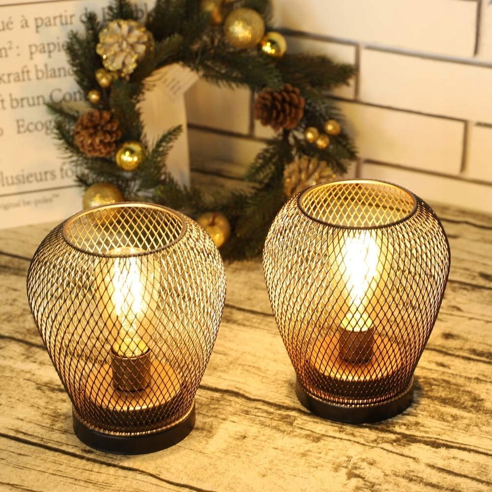 Набір з 2 металевих світильників, сільська настільна лампа з клітки