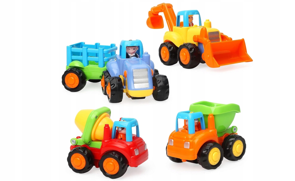 Дозвольте вашій дитині відкрити для себе світ будівельних машин із набором із чотирьох безпечних і барвистих транспортних засобів ідеального розміру для маленьких ручок! У набір входять реалістичні моделі - трактора, бетономішалки, самоскида та бульдозера - які не тільки радують своїм зовнішнім виглядом, а й розвивають уяву та ручні навички. Привід Push-and-Go забезпечує динамічну, захоплюючу розвагу без використання акумуляторів - просто злегка штовхніть автомобіль, і він поїде вперед.