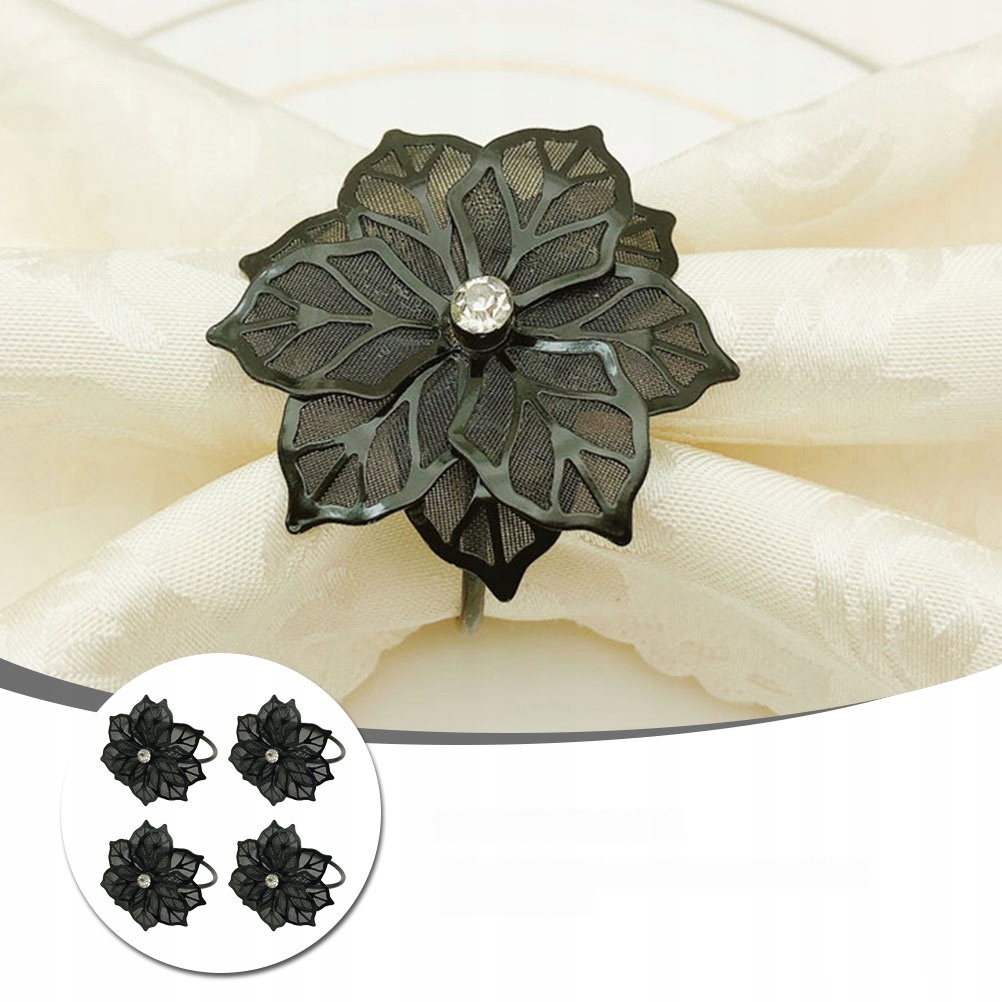 НАБІР З 4 ЕЛЕГАНТНИХ СЕРВЕТОК НА СТРІЧЦІ КВІТКИ ЧОРНИЙ МЕТАЛІК