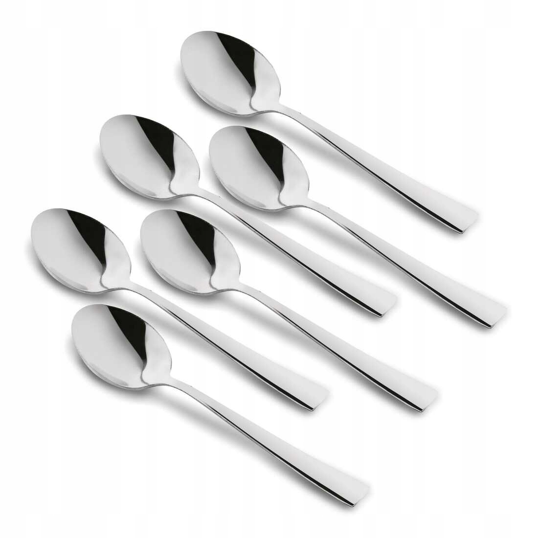 набір з 6 елегантних ложок столу з серії Mezo. Вони виготовлені з високоякісної нержавіючої сталі, з блискучою обробкою. Ложки мають дуже простий, класичний дизайн, що робить їх ідеально вмістити в кожен декор. Вони підходять для миття посудомийної машини, завдяки якому вони тривалий час зберігатимуть відповідний вигляд. Такий набір, безумовно, буде корисним щодня або під час багатьох різних домашніх святкувань.