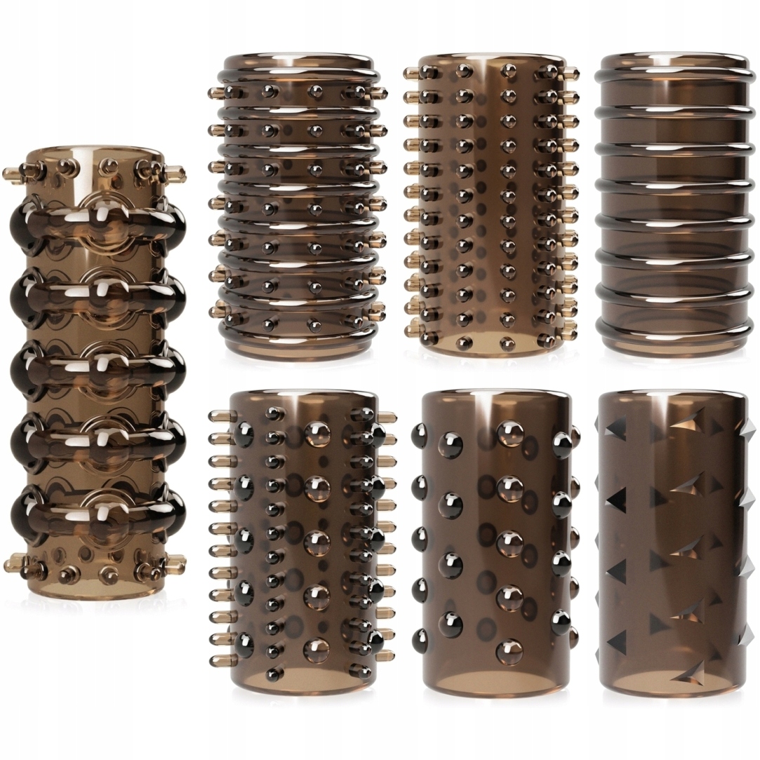 НАБІР З 7 СТИМУЛЮЮЧИХ ЧОХЛОВ НА ПЕНІС З ПРОДУКТАМИ ДЛЯ ОРГАЗМУ