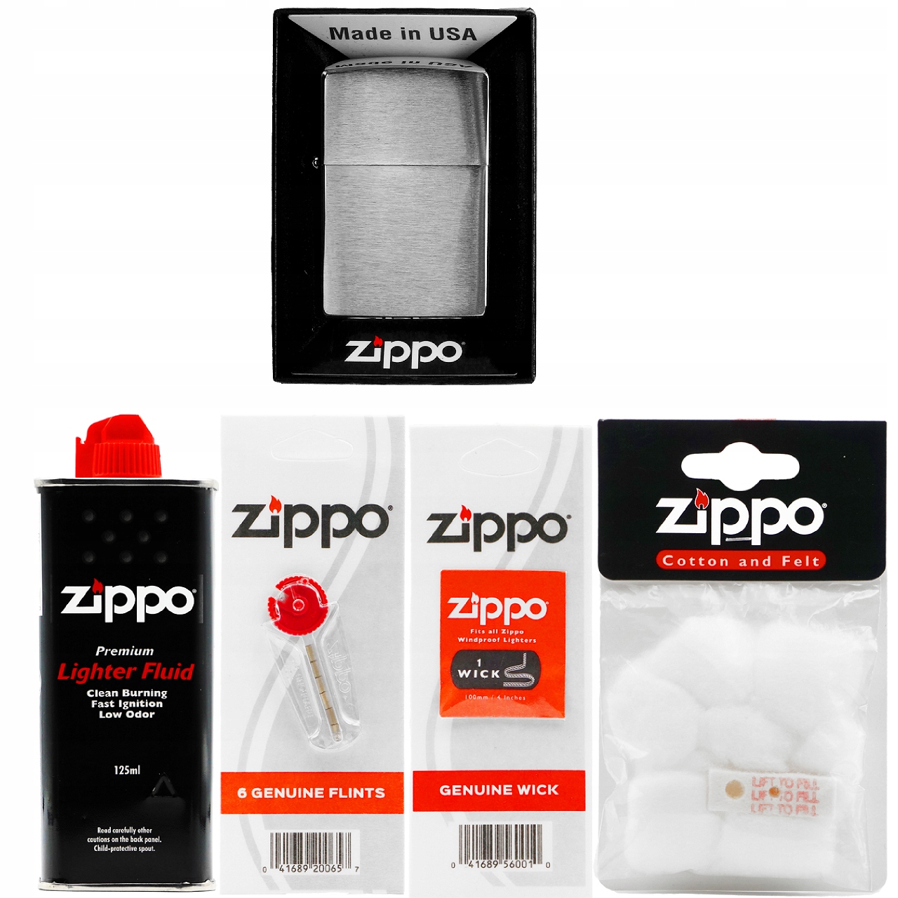 НАБІР ЗАПАЛЬНИЧОК ZIPPO БРІШОВАНИЙ ХРОМ БЕНЗИН КАМІННЯ WICK WAD Аксесуар