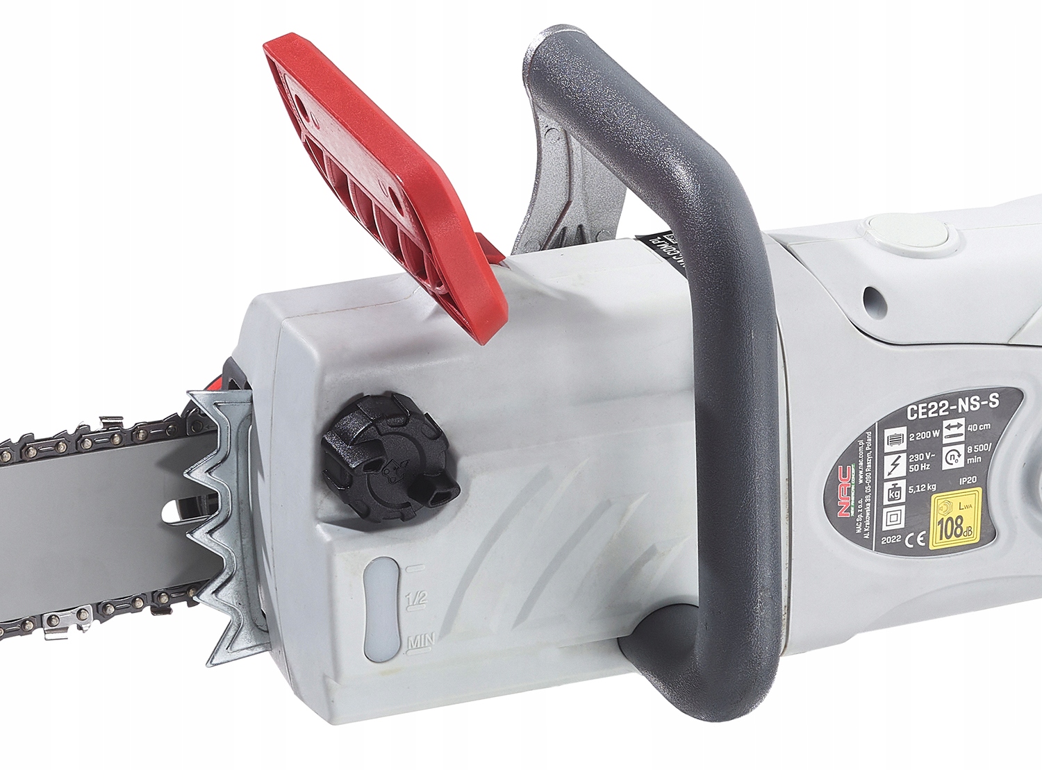 Електропила NAC CE22-NS-S із шиною довжиною 16" оснащена поздовжнім двигуном потужністю 2200 Вт