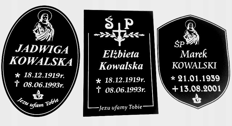 - Можливо вигравірувати дані кількох людей, будь-яке речення та можливість модифікації вибраного малюнка пластини, зміни графіки та шрифтів (зразки нижче). ul>