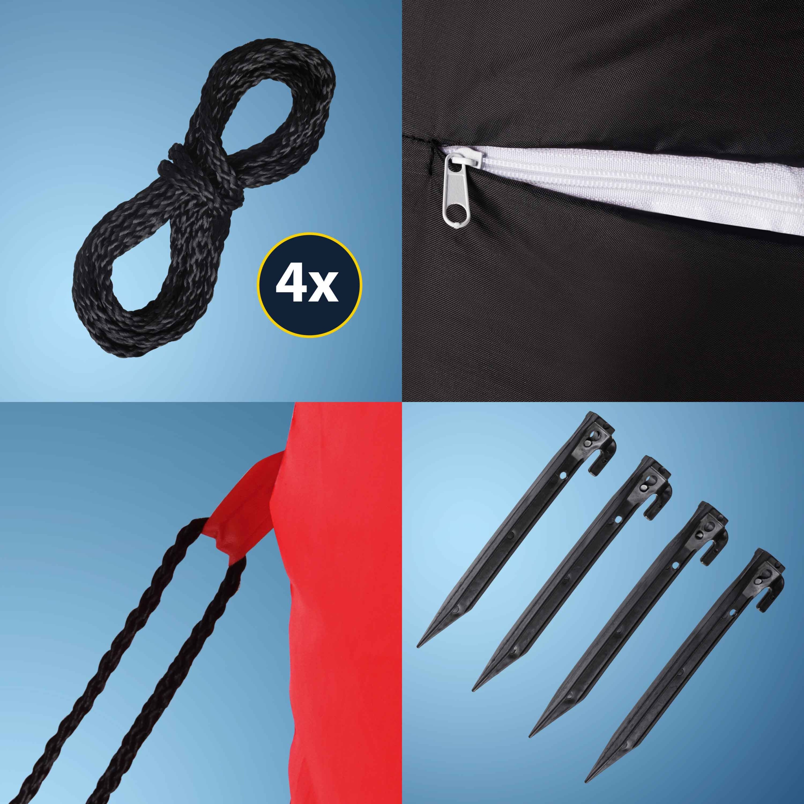- включно з 4x підйомником для землі, 4x 180 см вітровою мотузкою