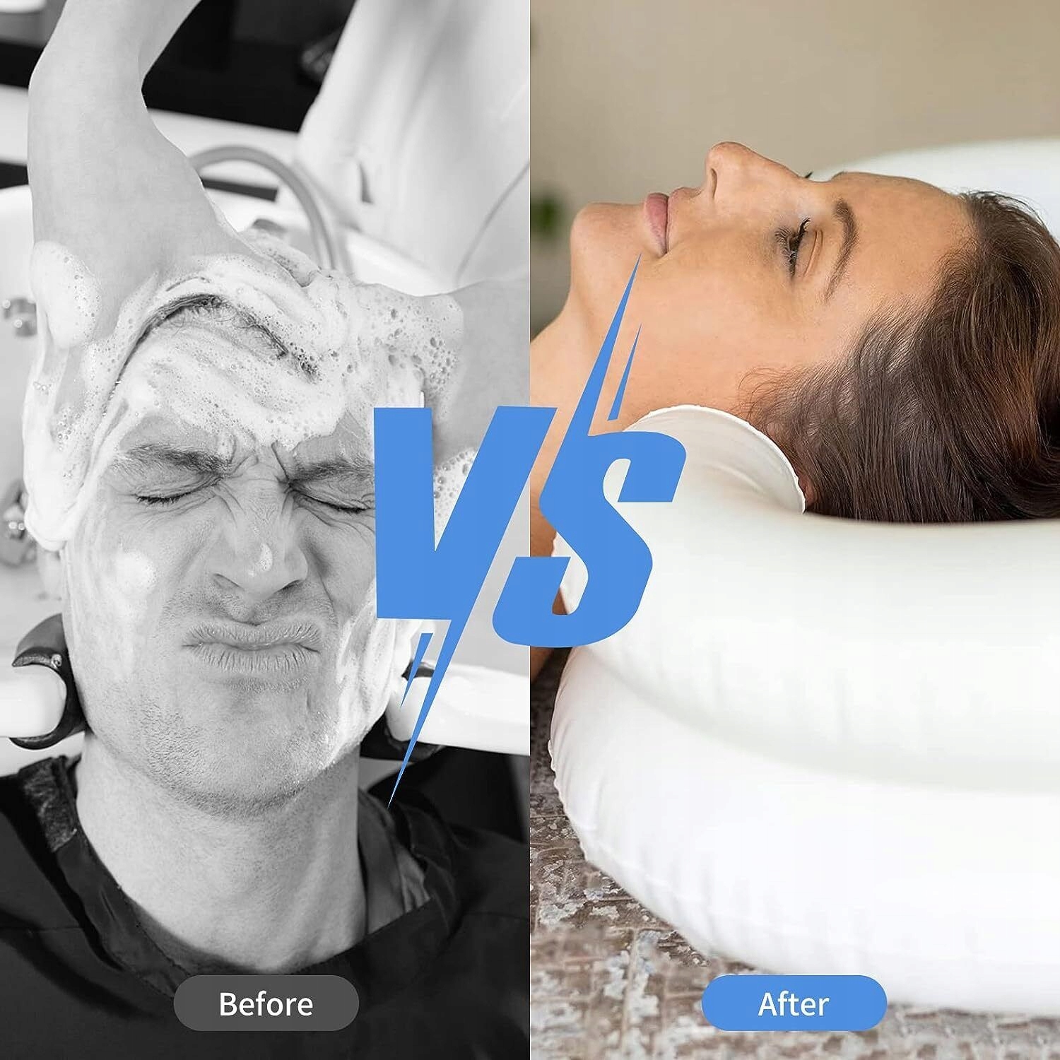 ❤ 【легкість і зручність】: Використовуйте надувну насадку, щоб надути подушку до 80-90% і використовувати її. Після надуття покладіть шию користувача в порожнину раковини і насолоджуйтесь комфортним миттям волосся, як завжди!
