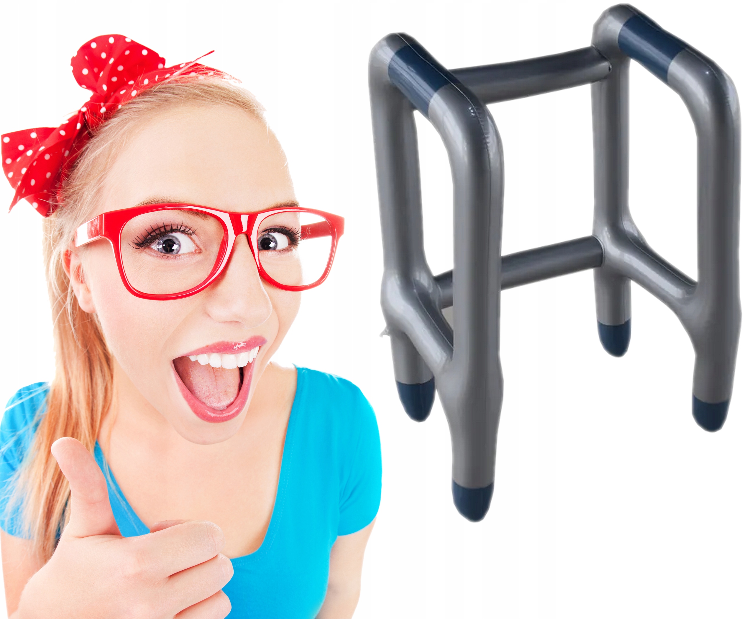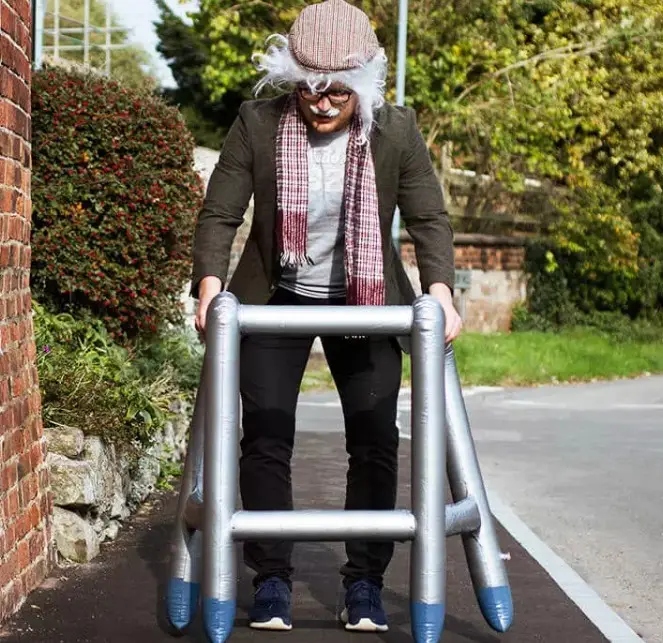 Шукаєте ідею подарунка для людини, яка постійно скаржиться на біль у спині чи роки летять? Подаруйте їй надувні ходунки. У надутому стані він має розміри80 x 37 x 48 см. Його можна використовувати як кумедний гаджет для вечірок, а також як корисний поручень, щоб підтримувати себе. Все запаковано в коробку з вішалкою.