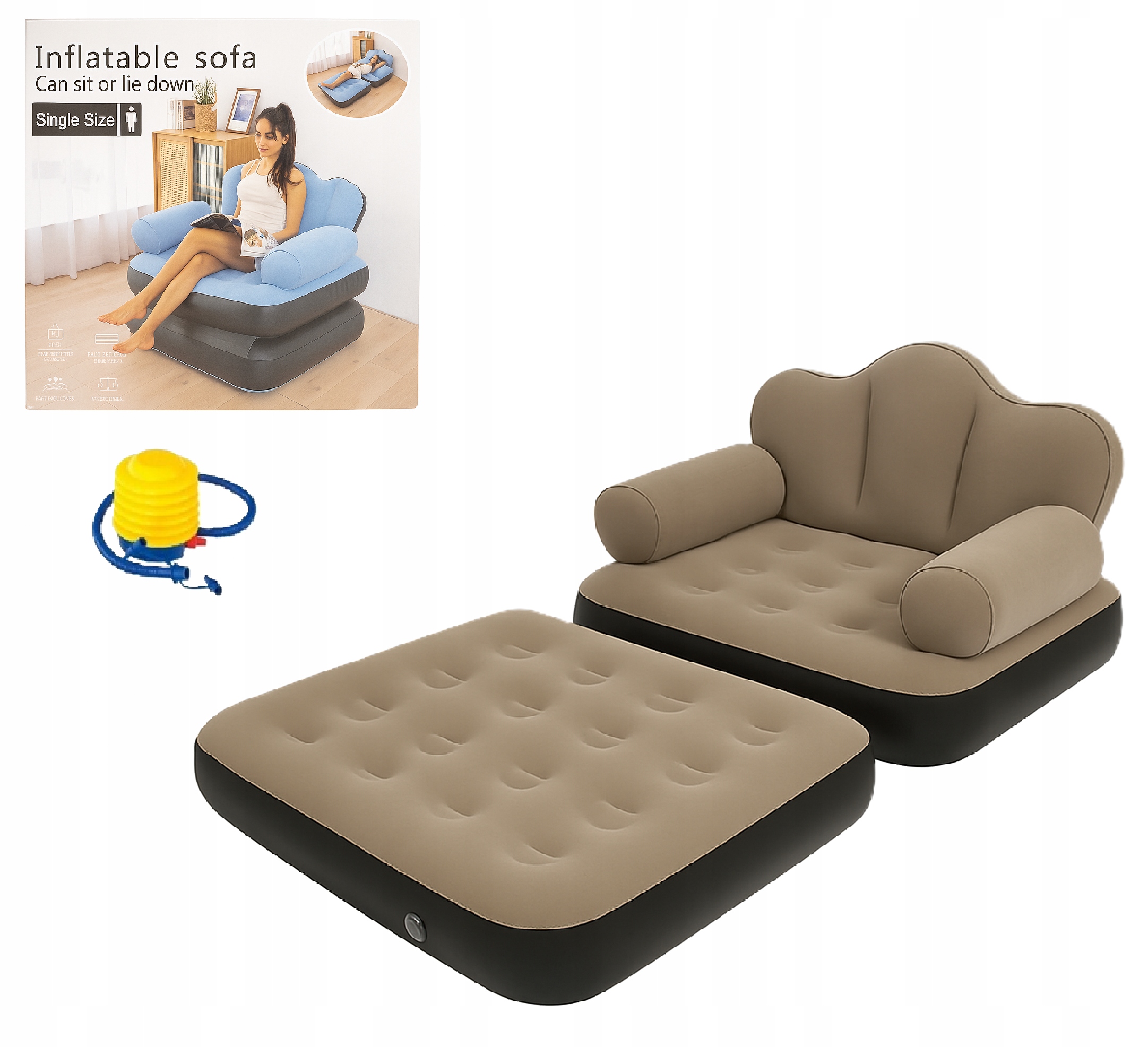 НАДУВНЕ РОЗКЛАДАНЕ КРІСЛО 2в1 – ДИВАН + ЛІЖКО – З НАСОСОМ