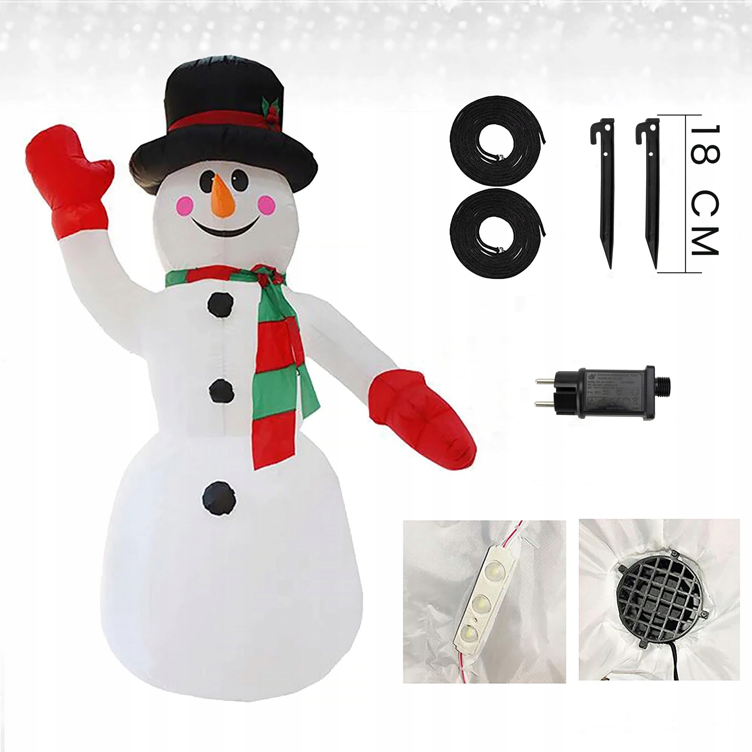 НАДУВНИЙ ПРОМИСЛОВИЙ СНІГОВИК, СВІТИТЬСЯ, ВЕЛИКИЙ 180 СМ, СВІТЛОДІОДНА ЛАМПА ДЛЯ РІЗДВЯ