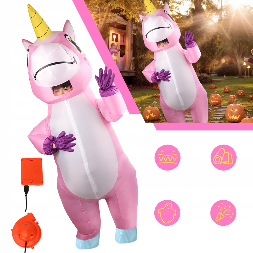 НАДУВНИЙ КОСТЮМ ЄДИНОРОГА - РОЖЕВИЙ КОСТЮМ НА ХЕЛЛОВІН ТА КОСПЛЕЙ