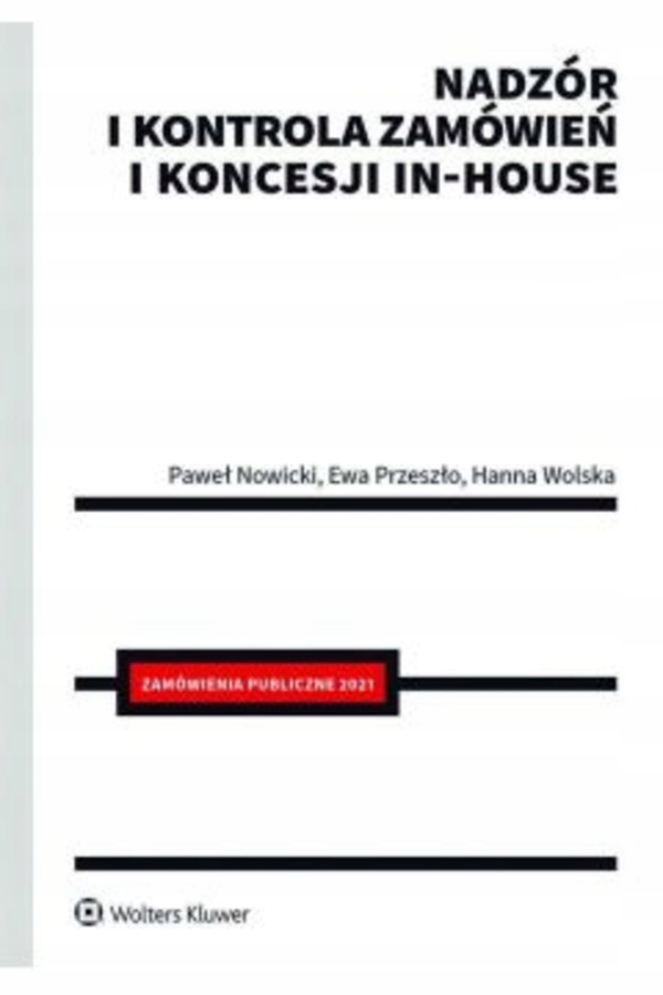 У виданні представлені правові аспекти нагляду та контролю за внутрішніми замовленнями, зокрема: такі питання, як: концептуальний обсяг контролю та нагляду в системі державних закупівель, внутрішні закупівлі в прецедентному праві Суду Європейського Союзу, внутрішні закупівлі в законодавстві Європейського Союзу, внутрішні закупівлі в польському закон про публічні закупівлі. Крім того, у книзі розглядаються не лише аспекти нагляду та контролю внутрішніх закупівель, а й питання внутрішніх концесій з урахуванням положень нового закону про публічні закупівлі, який набуде чинності 1 січня 2021 рік. Реципієнти: Книга буде цікава всім підприємцям, які беруть участь у процедурах публічних закупівель, а також юристам, юрисконсультам і студентам юридичних і адміністративних факультетів.