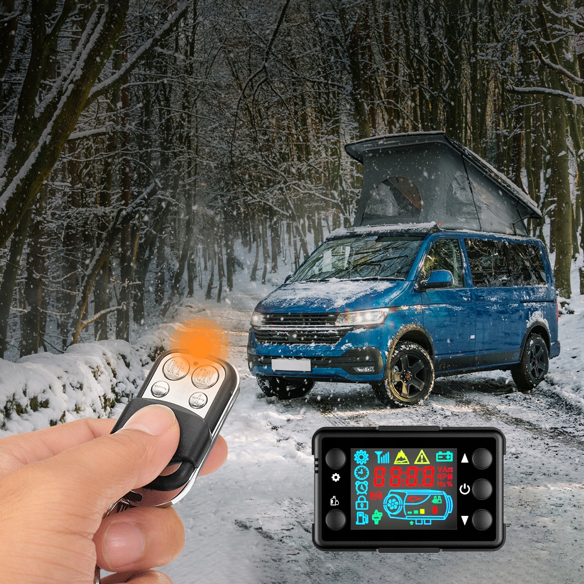 - Радіатор паркування оснащений цифровим РК -монітором, пропонуючи два режими управління температурою: вручну та автоматичні. Ви також можете встановити час нагріву завдяки функції програмування часу. 4 Можливість попереднього нагрівання за допомогою дистанційного керування дозволяє комфортно вводити транспортний засіб.