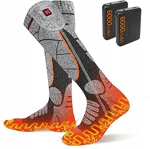 - 5 V 6000 мАг акумулятор: Наші нагріті шкарпетки оснащені літію-полімерними акумуляторами 5 В 6000 мАг, акумулятори більшої ємності зберігають ноги до 9 годин. Високоякісна низька діаметрова нагрівальна дроти, навіть нагрівання та стабільна температура, підтримують кровообіг у стопі і тримайте ноги теплими.