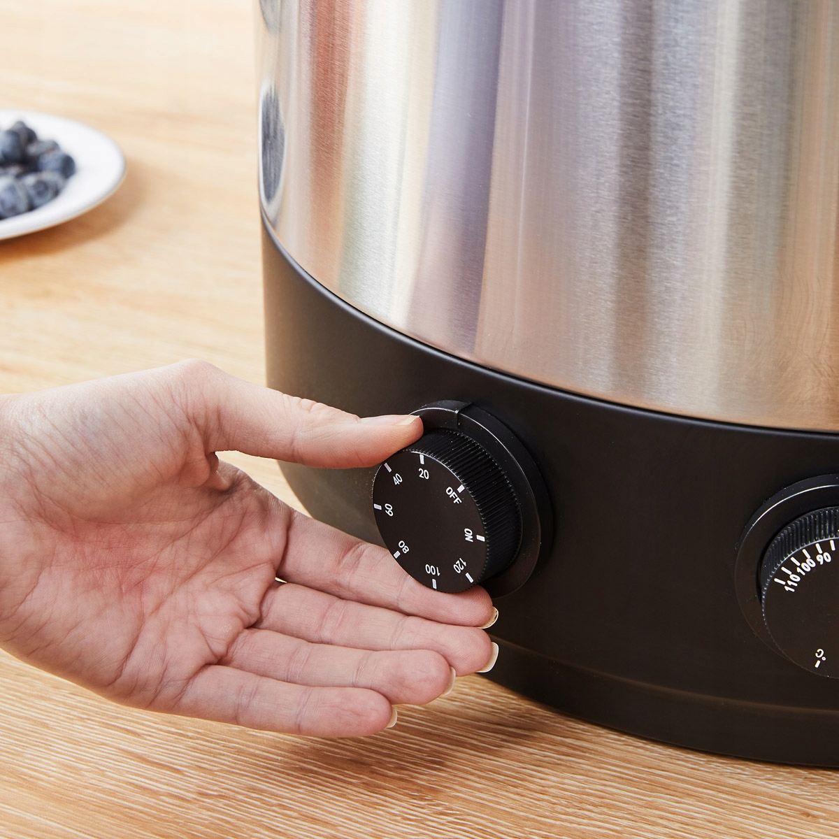 Для досягнення ідеального ефекту кипіння електроплита потужністю 1800 Вт має функцію таймера від 0 до 120 хвилин і регулювання температури від 30 до 100 градусів.