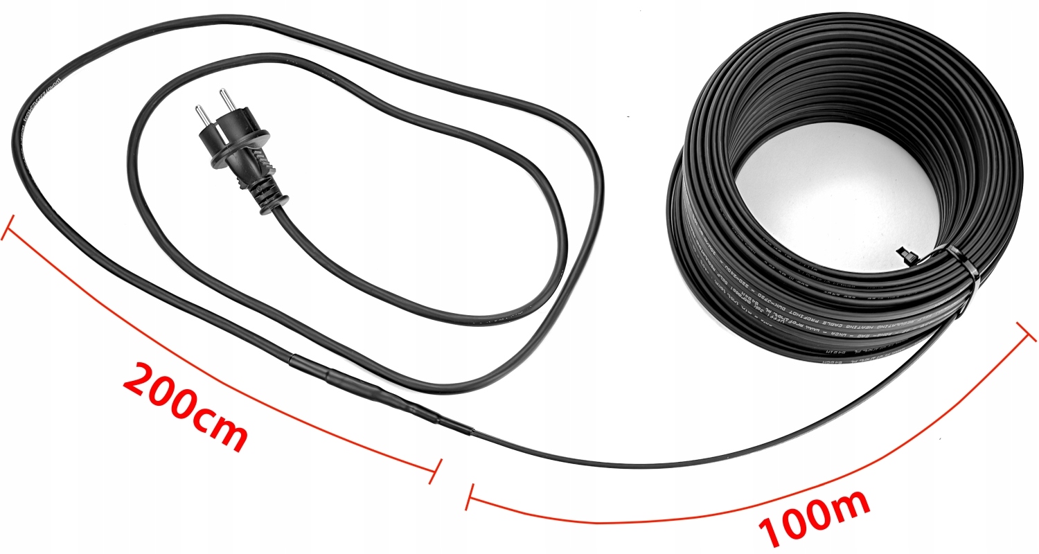 Саморегулюючий нагрівальний кабель 100 м 1000 Вт 230 В з кабелем живлення 200 см