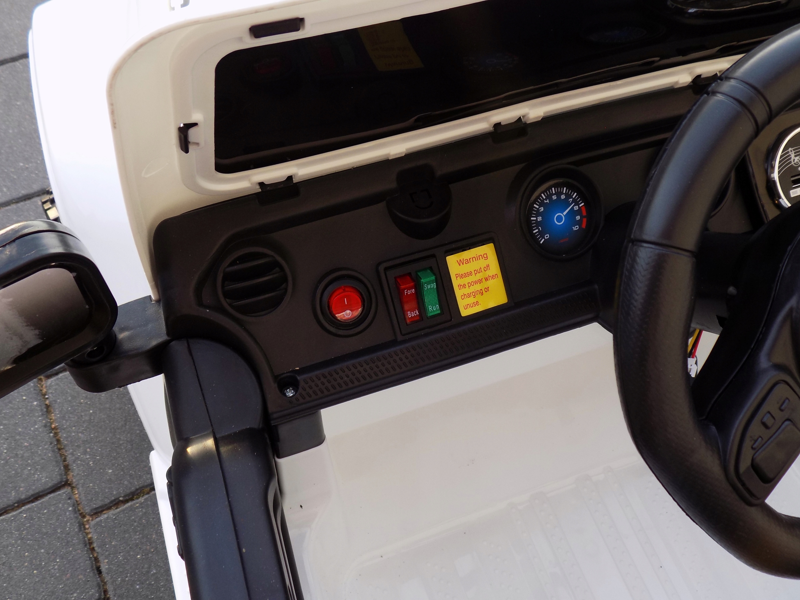 Керувати транспортним засобом можна як за допомогою пульта дистанційного керування (батьком), так і дитиною самостійно, сидячи за кермом. За допомогою пульта дистанційного керування ви можете їздити вперед і назад, повертати праворуч і ліворуч.
