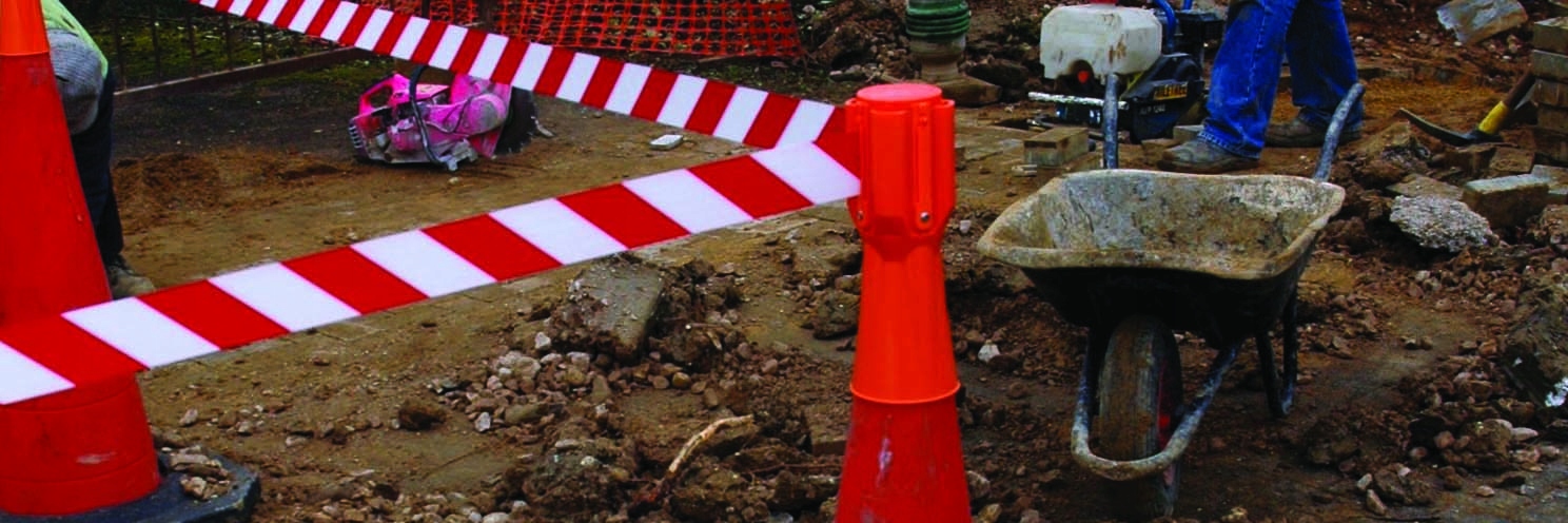 Накладка касети на стовпчик з попереджувальною стрічкою