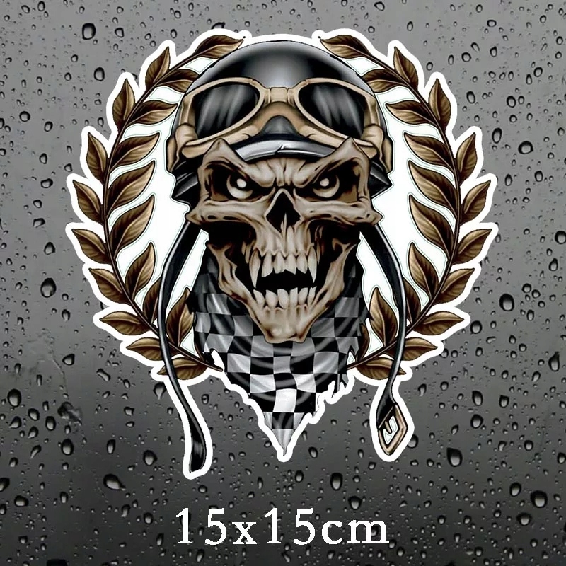 Наклейка черепа на велосипедний шолом на даху на капоті